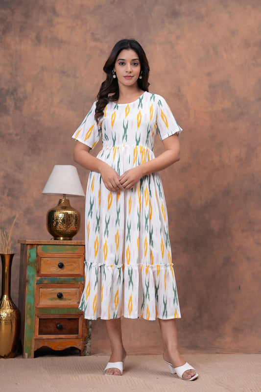Printed Viscose Rayon Stitched Flared/A-line Dress