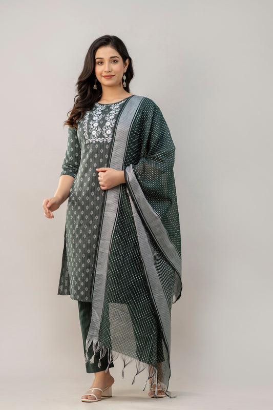 Women Viscose Rayon Kurta Pant Dupatta Set