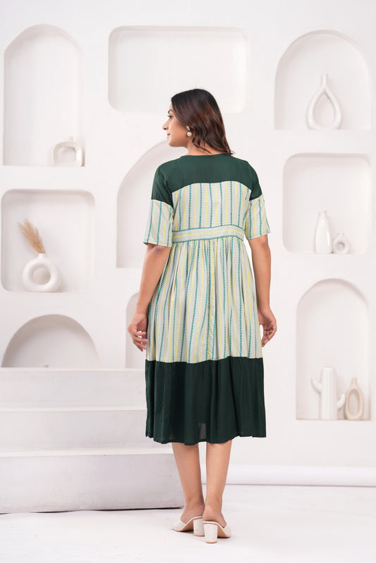 Women Fit and Flare Dark Green, Light Green Dress